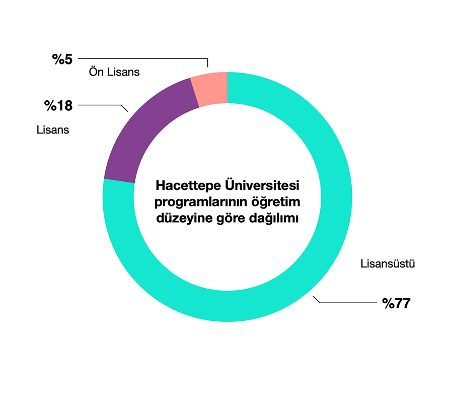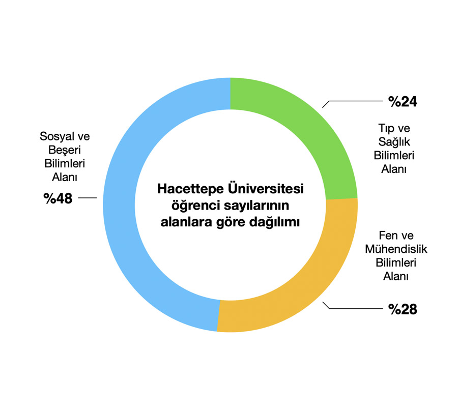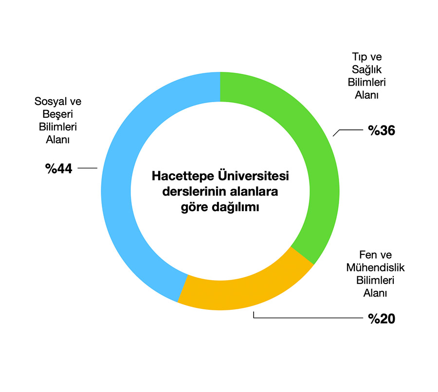 Hacettepe Üniversitesi’nde öğretim 3 ayrı düzeyde (ön lisans, lisans, lisansüstü) ve üç ana alanda (Tıp ve Sağlık Bilimleri Alanı, Fen ve Mühendislik Bilimleri Alanı, Sosyal ve Beşeri Bilimleri Alanı), 500 farklı programda, her dönem açılan 10000’den fazla dersle ve bu derslere kayıt olan 47000’den fazla öğrenci ile yürütülmektedir.