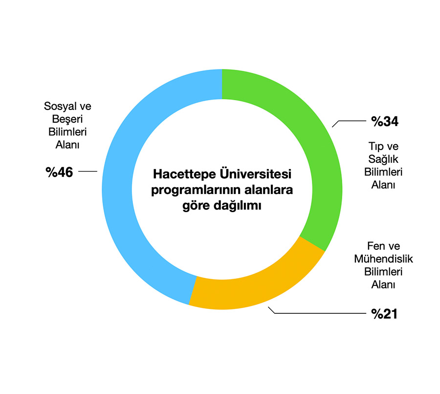 Programlarımızın ana bilim alanlarına (Tıp ve Sağlık Bilimleri Alanı, Fen ve Mühendislik Bilimleri Alanı, Sosyal ve Beşeri Bilimleri Alanı) ve öğretim düzeylerine (lisansüstü, lisans, önlisans) göre dağılımları şu şekildedir.